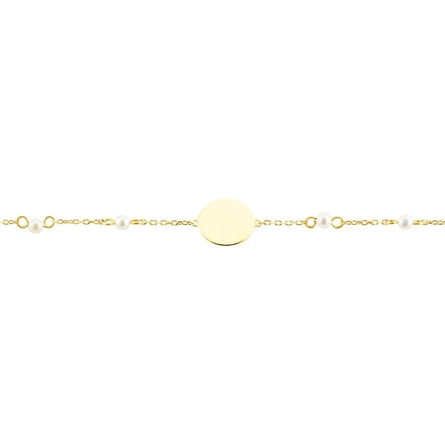 Bracelet Or Jaune 375/1000 6 Perles De Culture Rondes Blanches 2mm Collees Maille Forcat 16+2cm