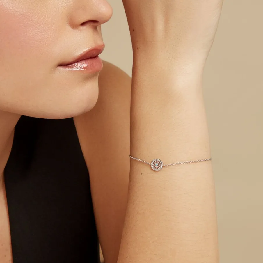 Bracelet Argent Blanc 925/1000 艙il Turc Oxyde De Zirconium Turquoise Maille Jaseron 17+3cm