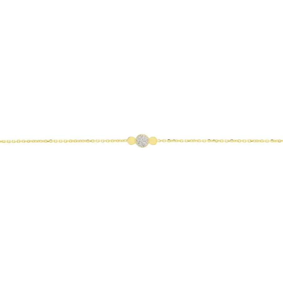 Bracelet Or Jaune 375/1000 Triple Pastilles Dont Une Glitter Argente Maille Jaseron 16+2cm