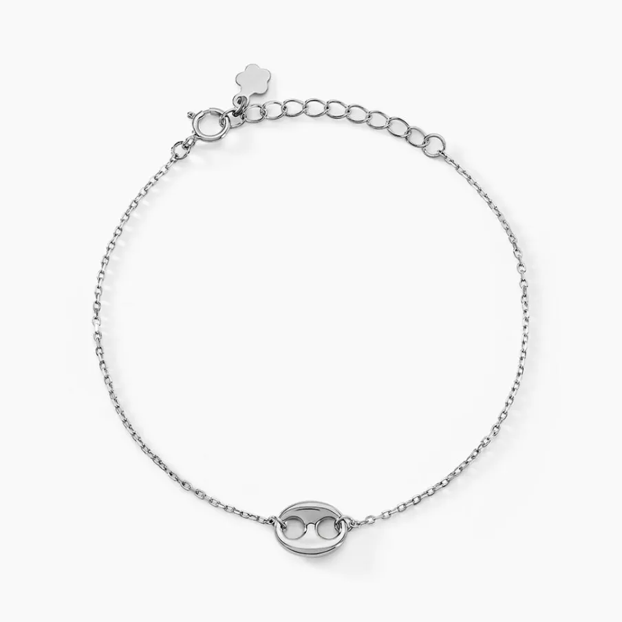 Bracelet Argent Blanc 925/1000 Motif Grain De Café Maille Forçat 16+3cm