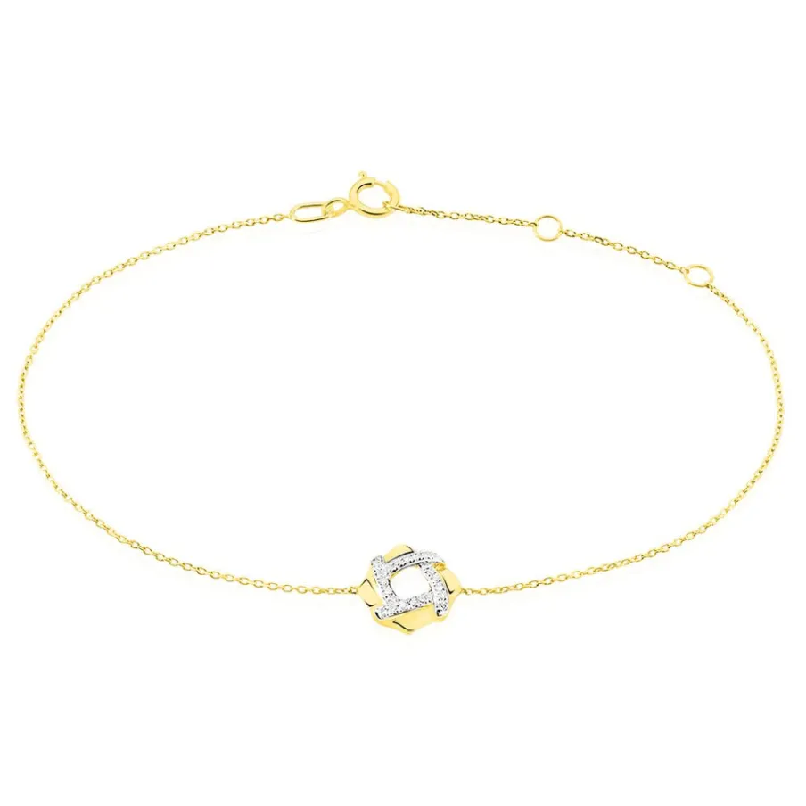 Bracelet Or Jaune 375/1000 Motif Cercle Ajoure Pavage Diamant 18.5cm