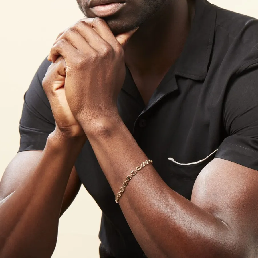 Bracelet Plaque Or Jaune Maille Grain De Cafe 5.75mm 21cm
