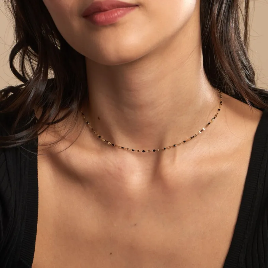 Collier Or Jaune 375/1000 Email Noir Maille Lumina 40+2cm