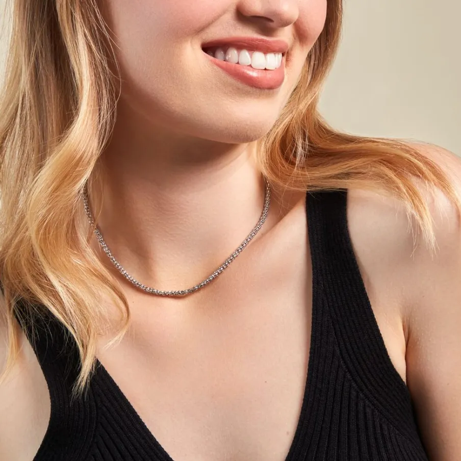 Collier Argent Blanc 925/1000 Maille Popcorn Largeur 3mm 45cm