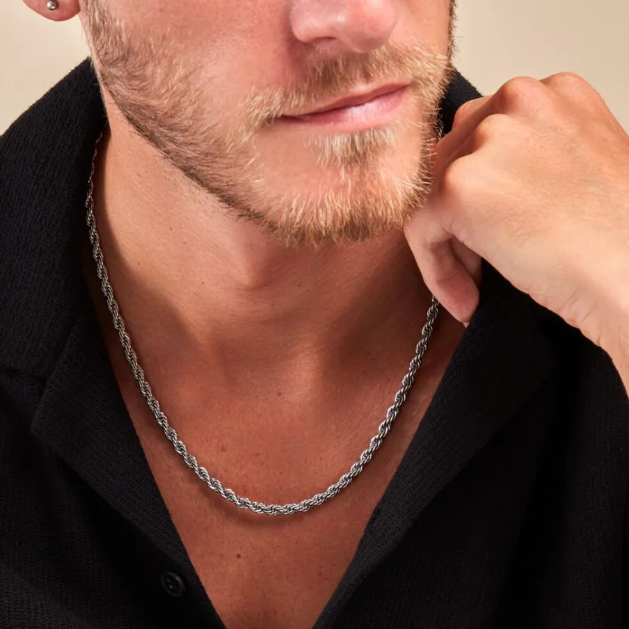 Collier Acier Inoxydable Blanc Maille Corde Largeur 5mm 55cm