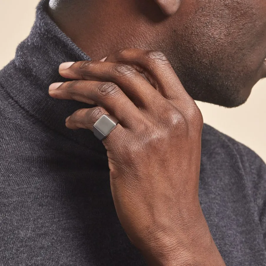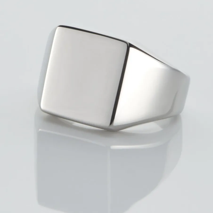 Chevaliere Acier Inoxydable Blanc Plateau Carre Lisse