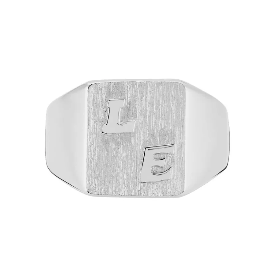 Chevaliere Argent Blanc 925/1000 Plateau Carre Gm Avec Initiale