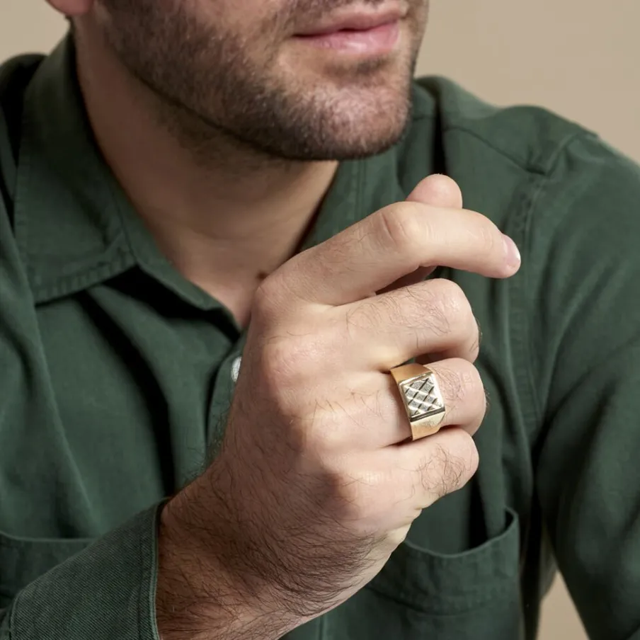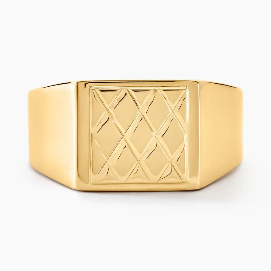 Chevaliere Or Jaune 375/1000 Carrée Effet Quadrillage