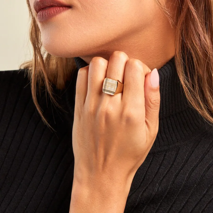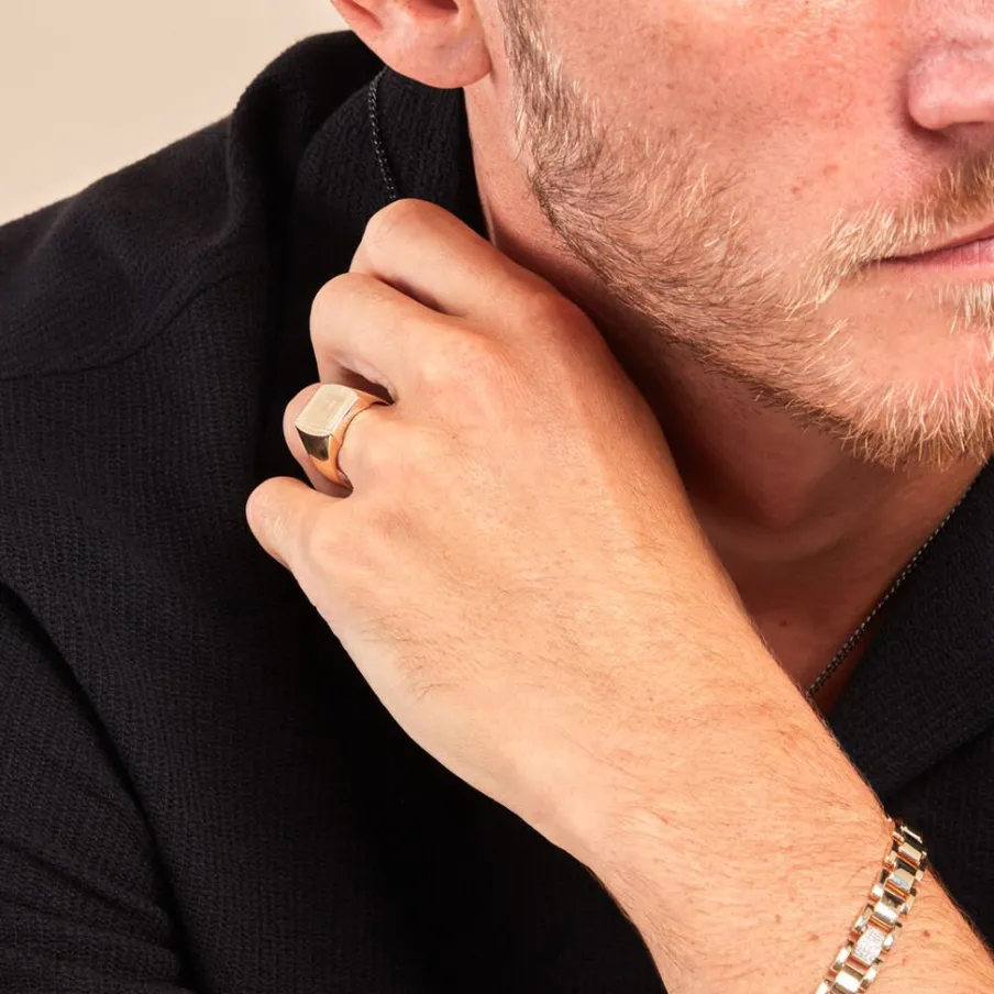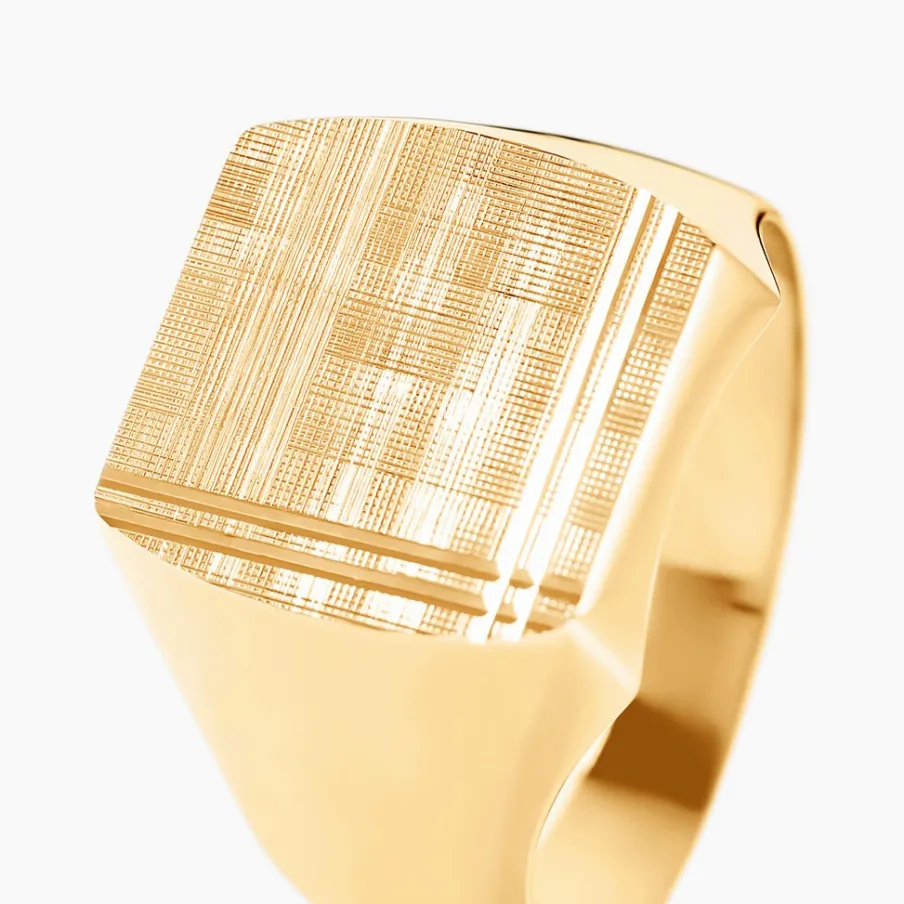 Chevalière Or Jaune 375/1000 Plateau Tonneau Effet Quadrille Brossé Avec Lisseret