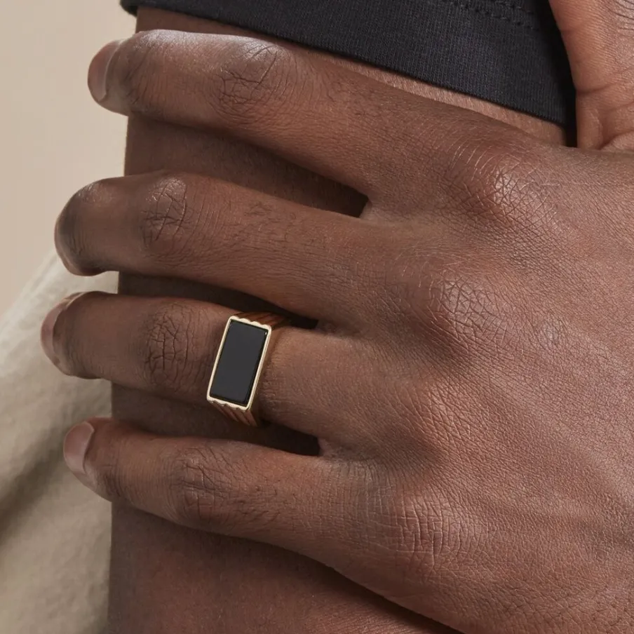 Chevalière Plaqué Rectangulaire Onyx Noir