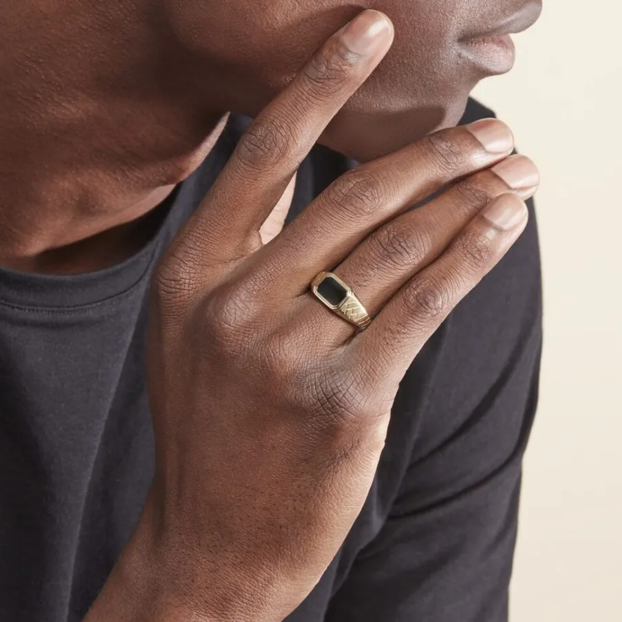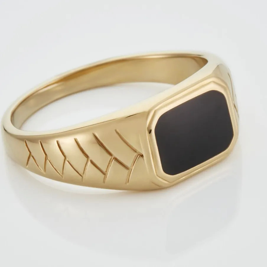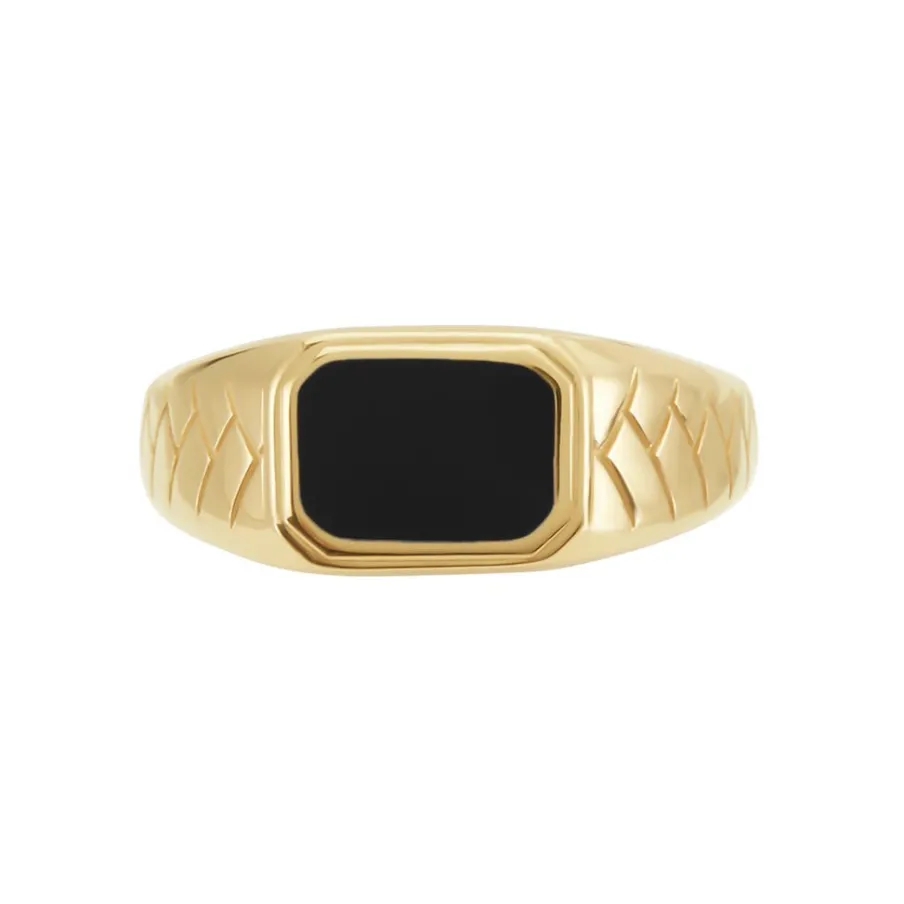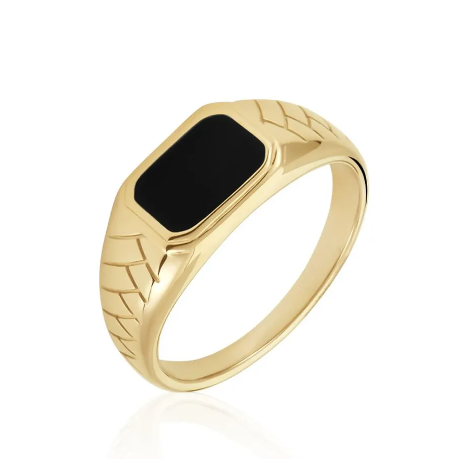 Histoire d’Or Chevalière Plaqué Or Jaune Steven Email Noir