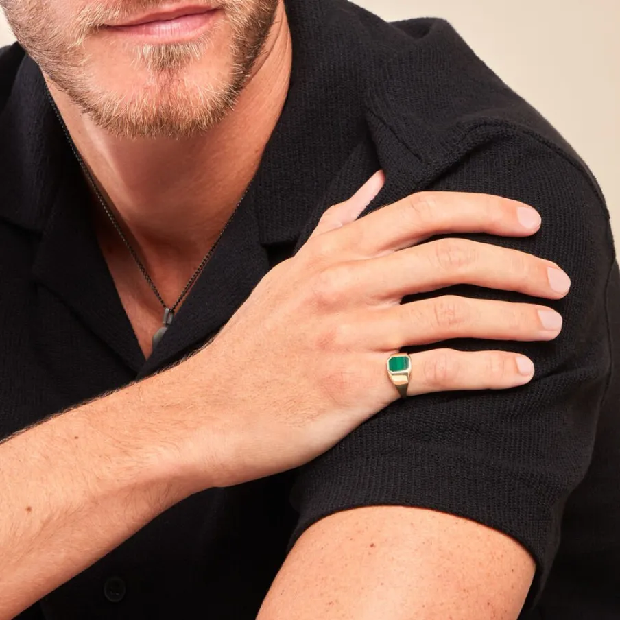 Chevaliere Or Jaune 375/1000 Forme Octogonale Malachite