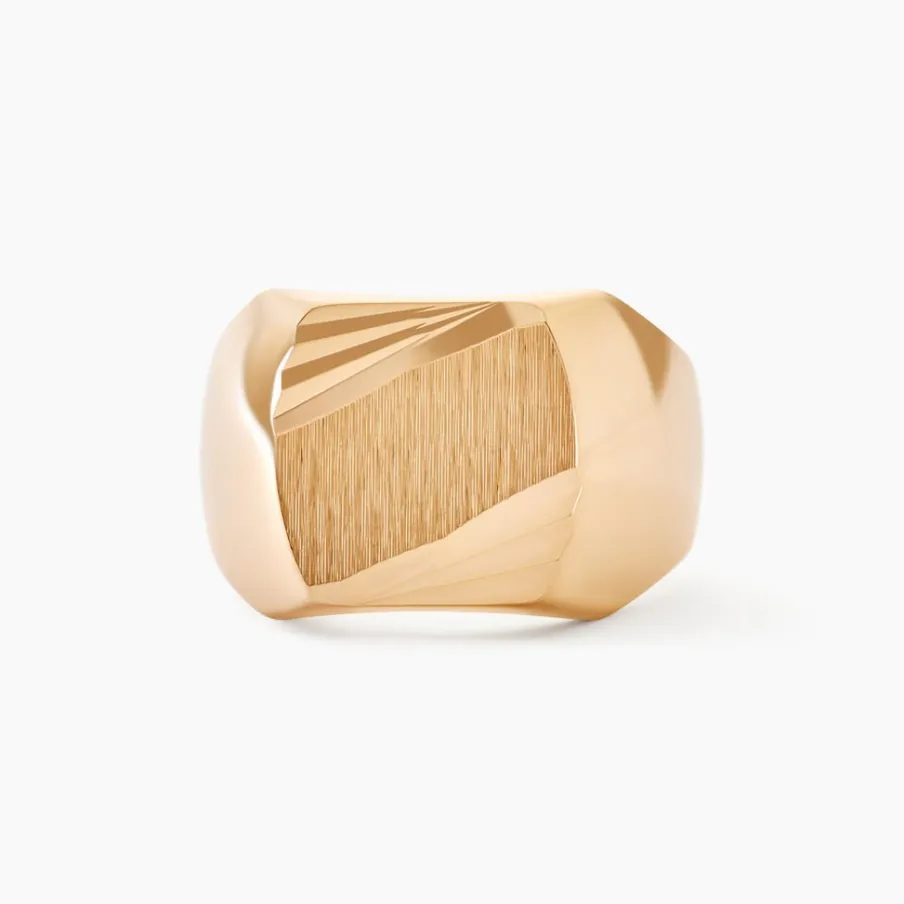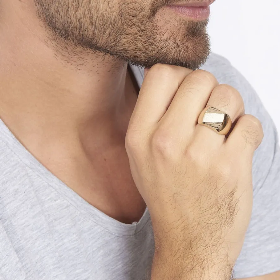 Chevaliere Plaqué Or Jaune Plateau Carre Strie