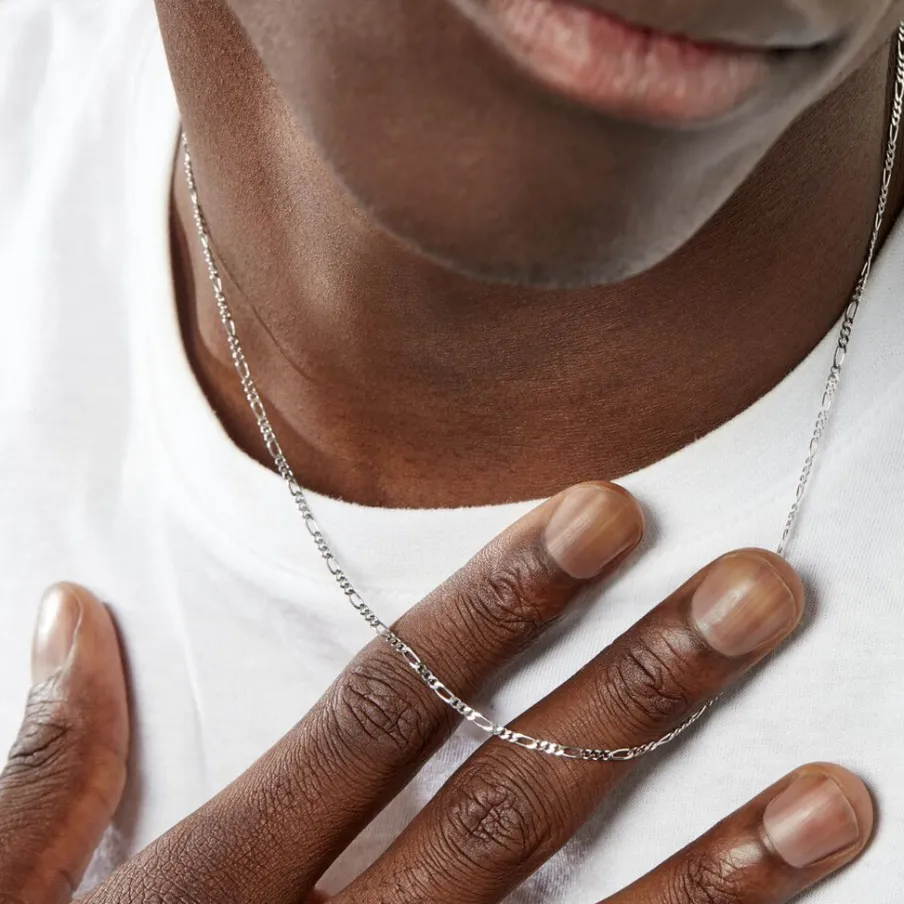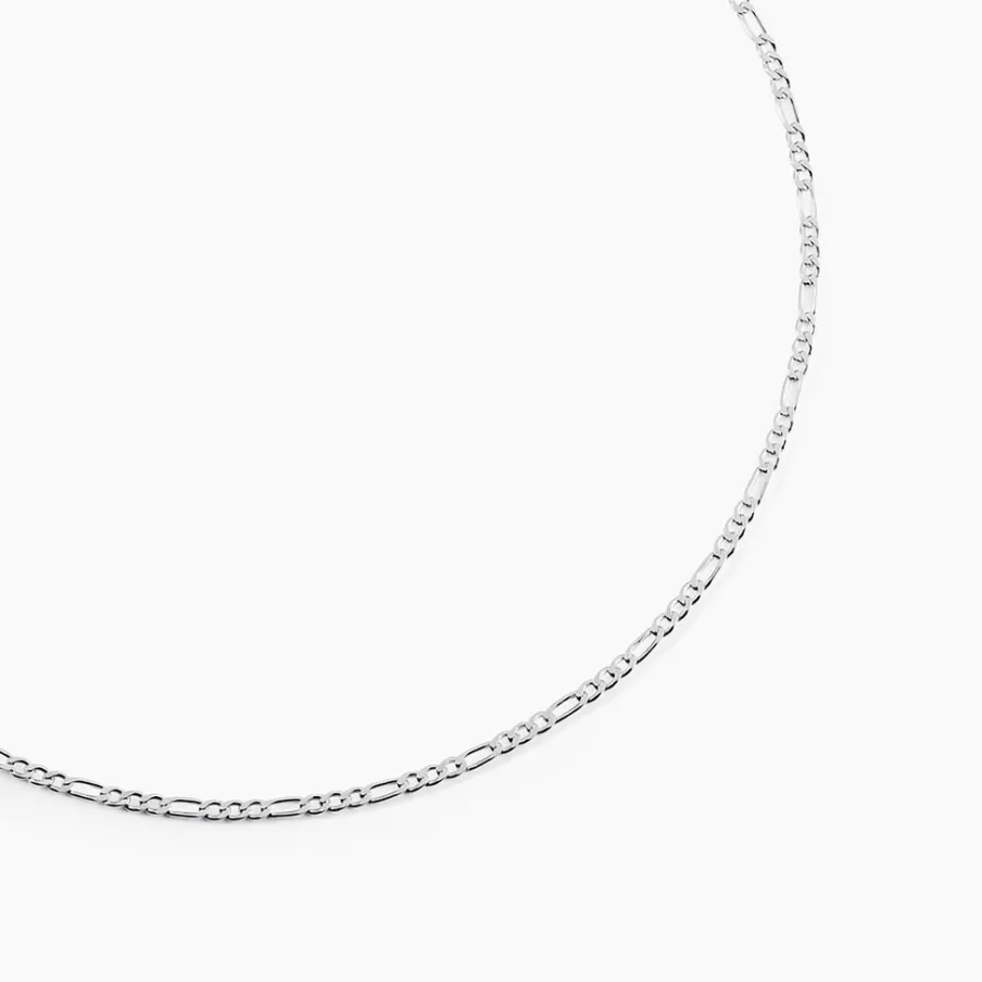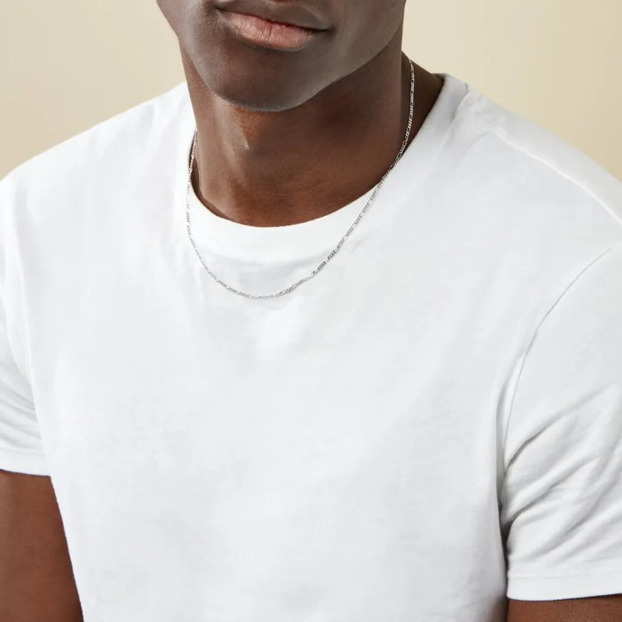 Collier Maille Argent Blanc 925/1000 Maille Alternee 1/3 Largeur 2mm 50cm