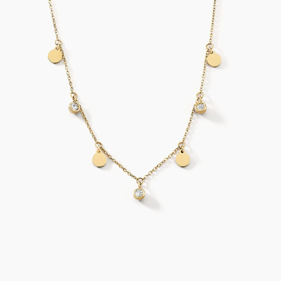 Collier Aurore Acier Doré Pampille Cristal Blanc Maille Forçat 45cm