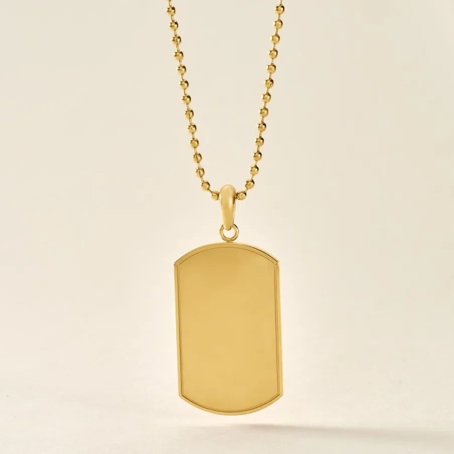 Collier Acier Inoxydable Jaune Plaque Type Militaire Maille Forcat 55cm