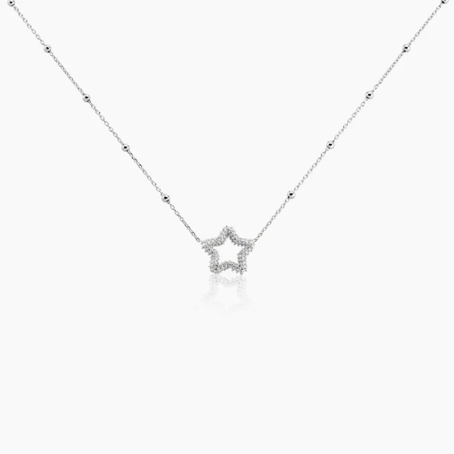 Collier Argent Blanc 925/1000 étoile Effet Perlé Maille Forçat 42+3cm