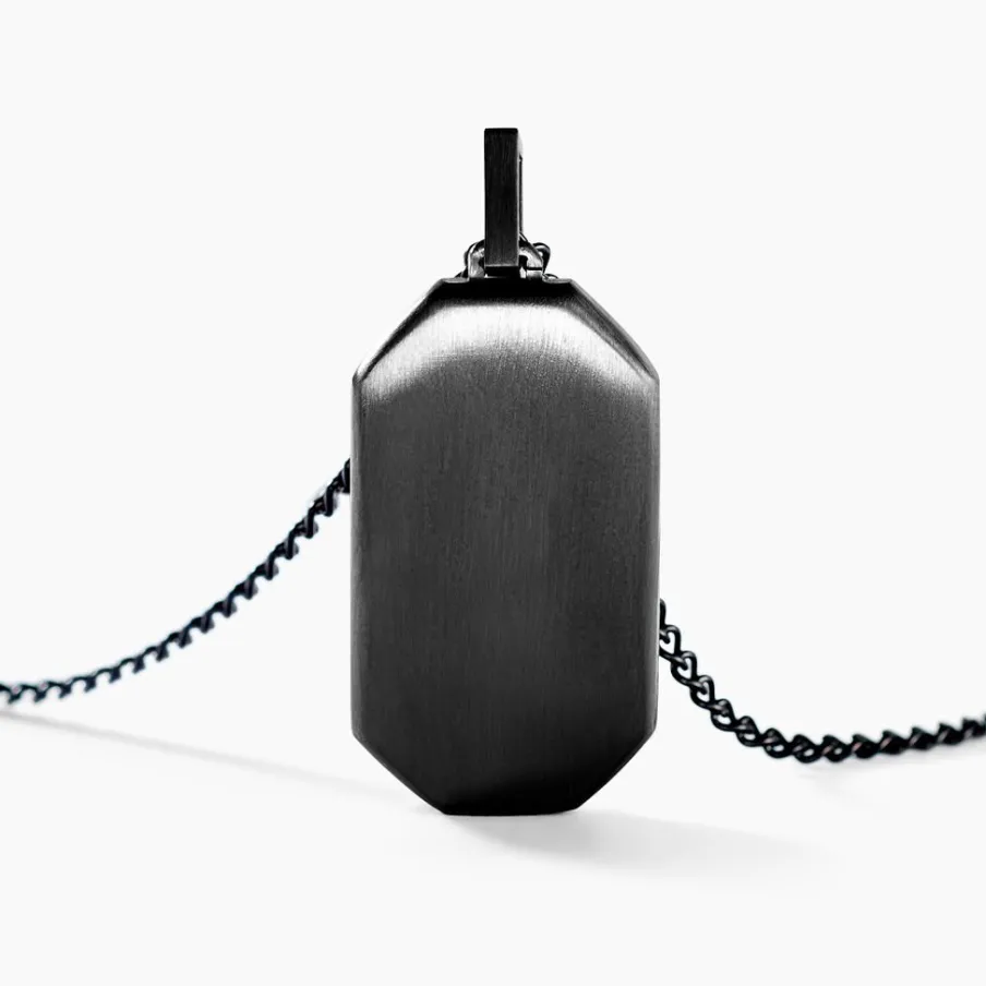 Collier Acier Inoxydable Noir Plaque Rectangulaire Maille Gourmette Largeur 2mm 55cm