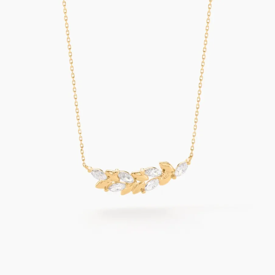 Collier Or Jaune 375/1000 Forme Epi De Blé Oxydes De Zirconium 42cm