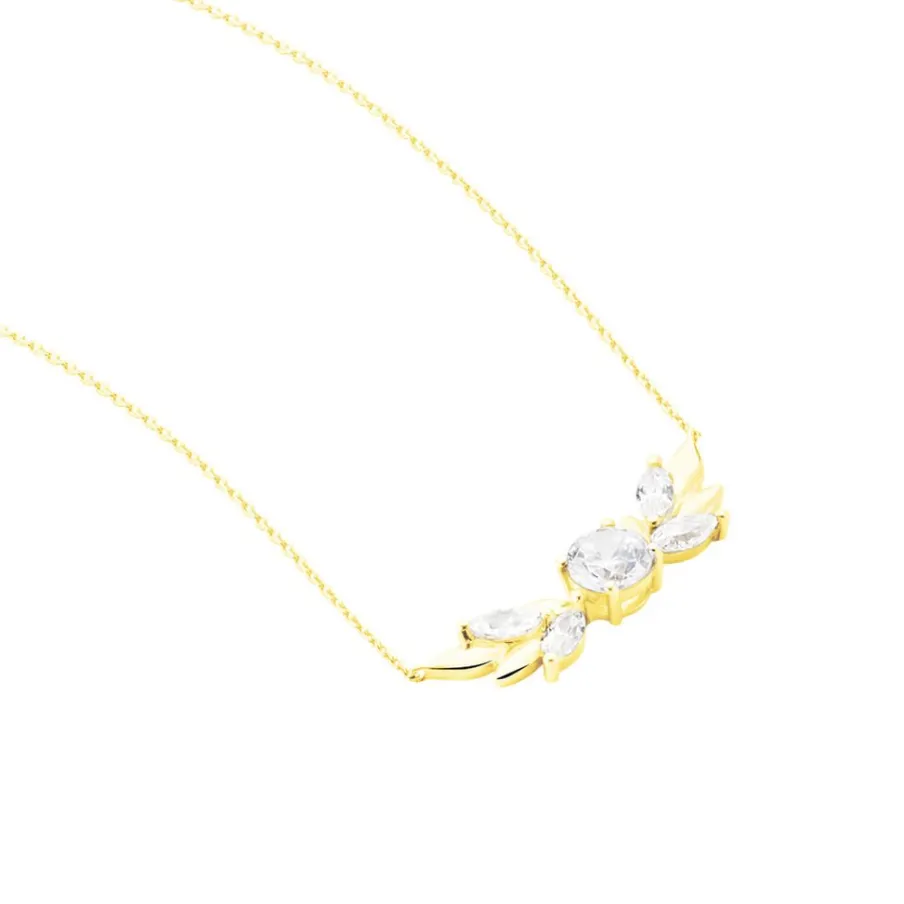 Collier Or Jaune 375/1000 Oxyde De Zirconium Central Forme Epi De Blé Oxydes De Zirconium 42cm