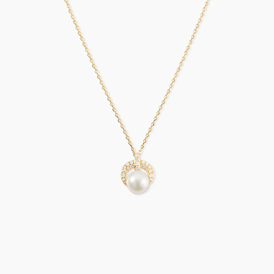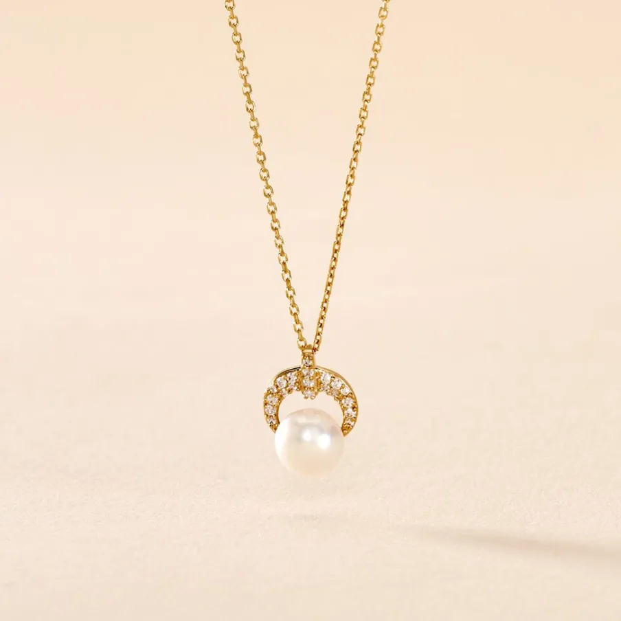 Collier Or Jaune 375/1000 Perle De Culture 6mm Demi Cercle Oxydes De Zirconium 43cm