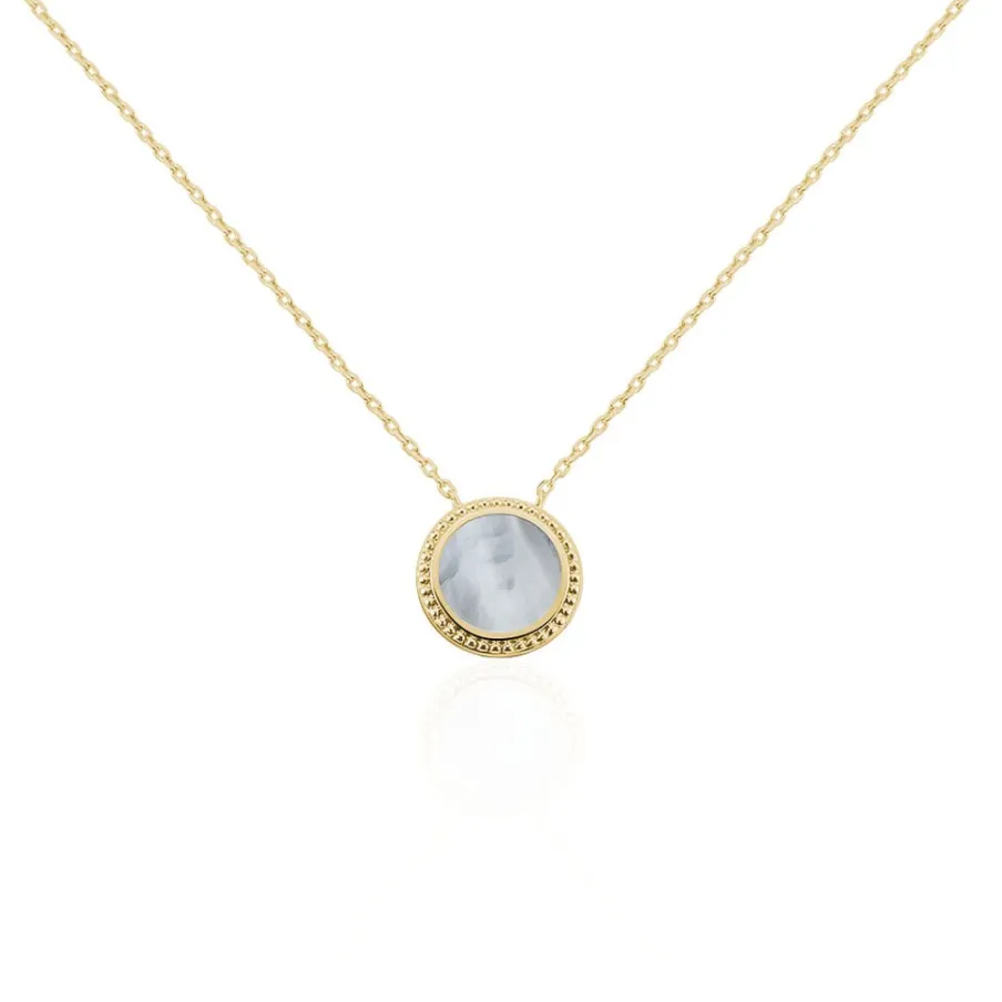 Collier Plaqué Or Jaune Nacre Ronde Entourage Perle 45cm