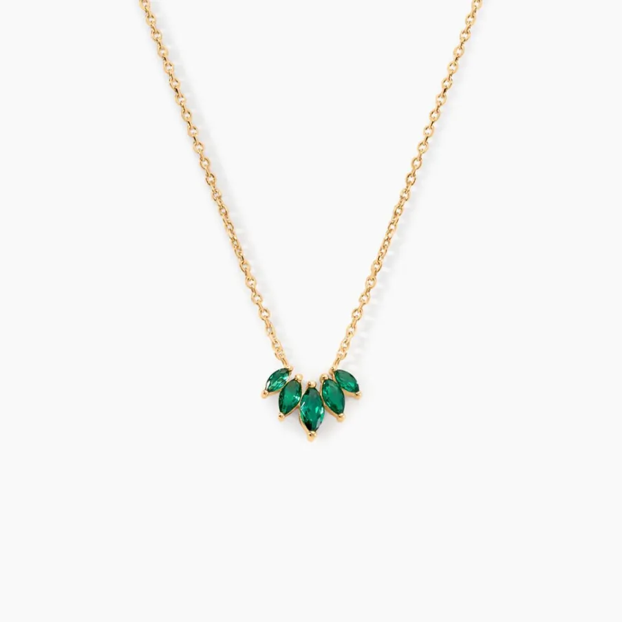 Collier Plaqué Or Jaune Oxydes De Zirconium Verts Forme Navette Maille Forçat 45cm