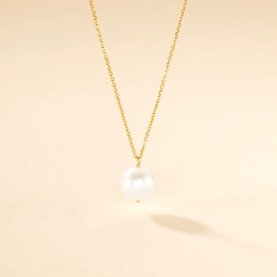 Collier Or Jaune 375/1000 1 Perle De Culture Ronde Blanche Percee 7.5/8mm Maille Forcat 40+2cm