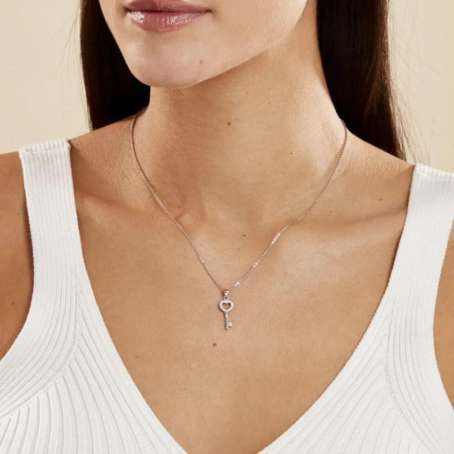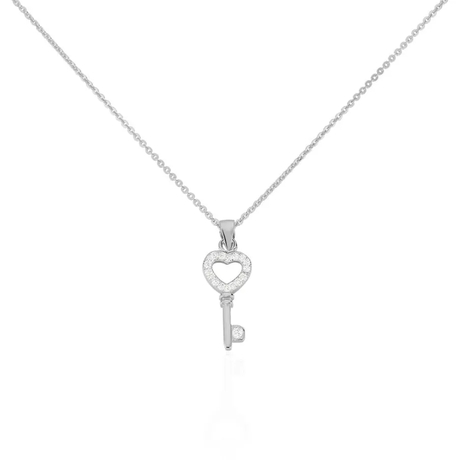 Collier Argent 925/1000 amy Pendentif Clef Avec Coeur Et Oxydes De Zirconium Maille Forcat