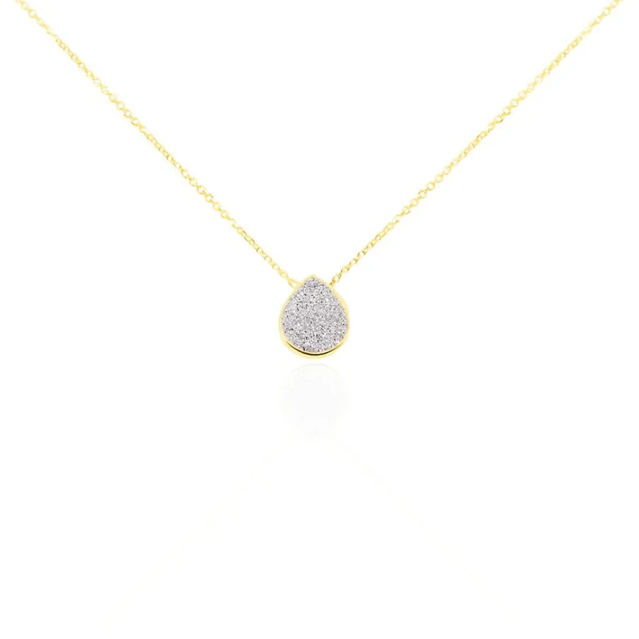 Collier Or Jaune 375/1000 Motif Goutte Glitter Silver Maille Jaseron 42cm
