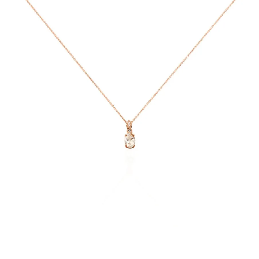 Collier Or Rose 375/1000 Morganite Avec Oxydes De Zirconium 42cm