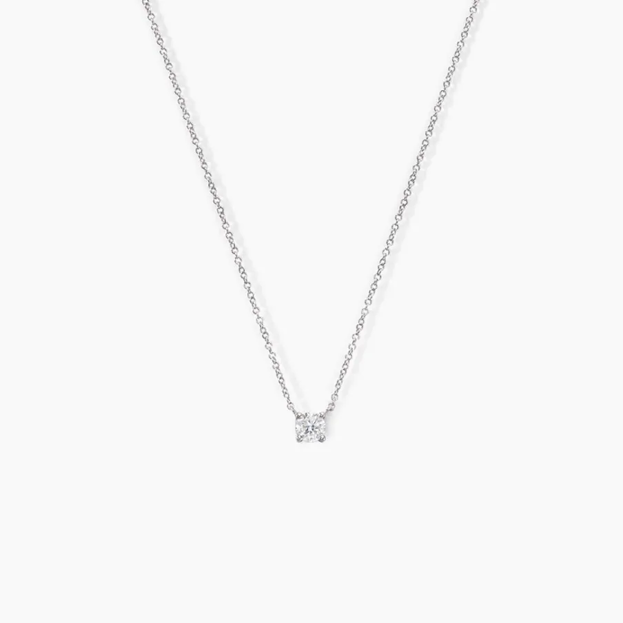 Collier Or Blanc 375/1000 Solitaire Diamant 0.20cts 42cm