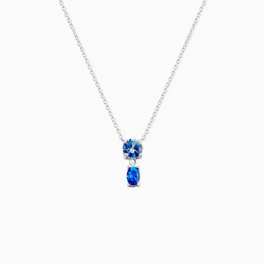 Collier Argent Blanc 925/1000 Serti Griffes Oxydes De Zirconium Bleu Clair Et Bleu Maille Forçat 45cm