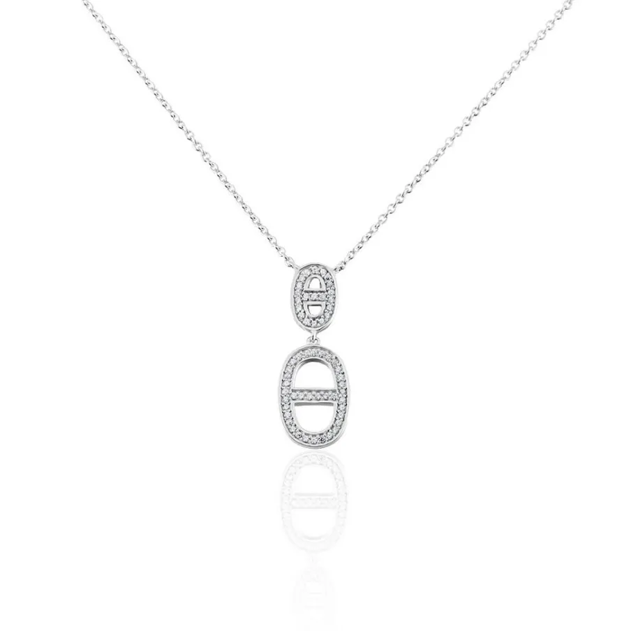 Collier Argent Blanc 925/1000 Maillon Pavage Oxydes De Zirconium Maille Forçat 44cm