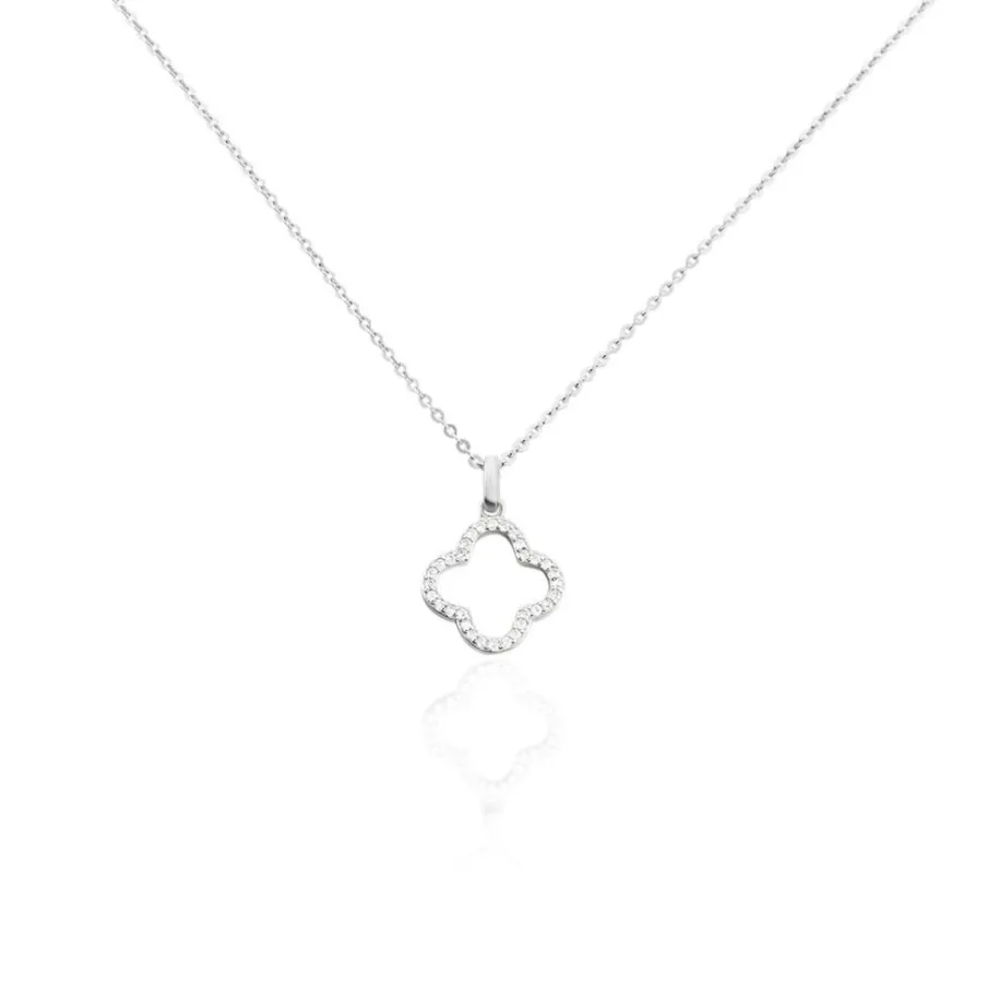 Collier Argent Blanc 925/1000 Fleur Oxydes De Zirconium Sertis Pavage Maille Jaseron 42cm