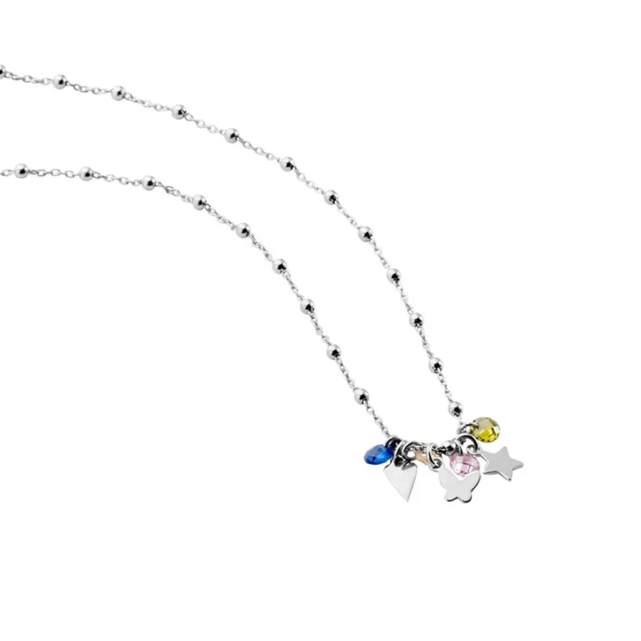 Collier Argent Blanc 925/1000 Pampilles Etoile Coeur Papillon Et Pierres Artificelles Maille Boules 38cm