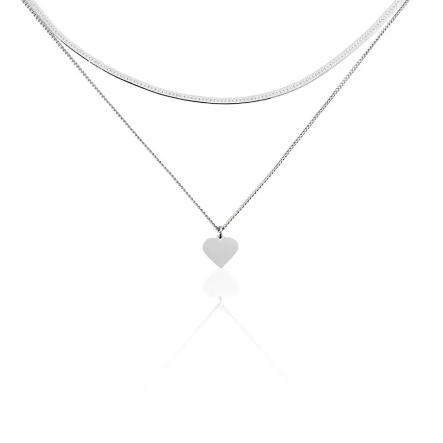 Collier Argent Blanc 925/1000 C艙ur Double Chaines Maille Serpent Et Maille Gourmette 45cm