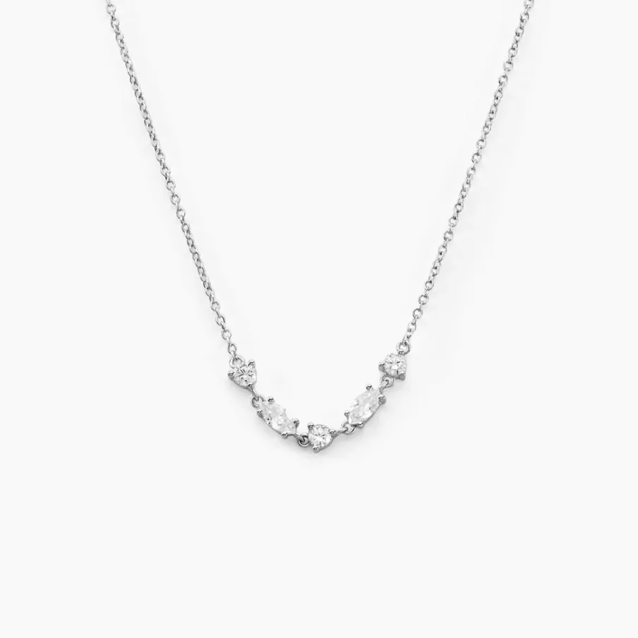 Collier Argent Blanc 925/1000 Multipierres Navettes Oxydes De Zirconium Maille Forçat 38+4cm