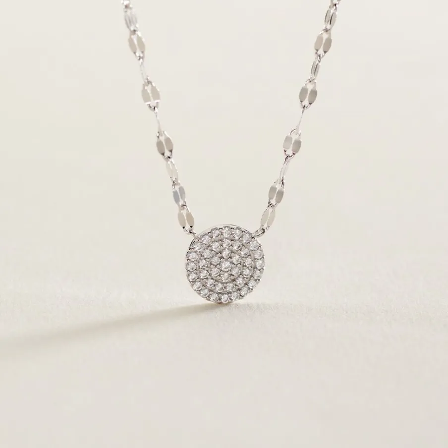 Collier Argent Blanc 925/1000 Pastille Pavage Oxydes De Zirconium Maille Lumina 45cm