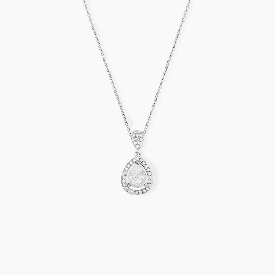 Collier Argent Blanc 925/1000 Oxyde De Zirconium Goutte Entourage Maille Forcat 42+3cm