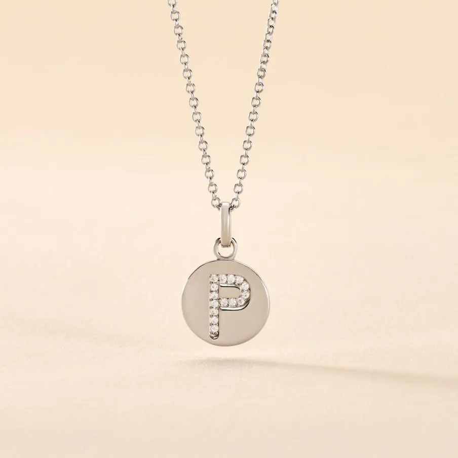 Collier Argent 925/1000 eugenien Pendentif Lettre P Pavage Oxydes De Zirconium Maille Forcat 45cm