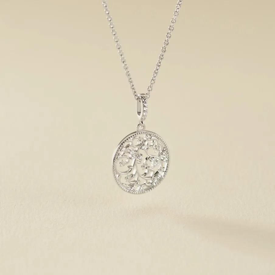 Collier Argent 925/1000 plantain Pastille Florale Sertis Griffes Oxydes De Zirconium Maille Forcat 45cm