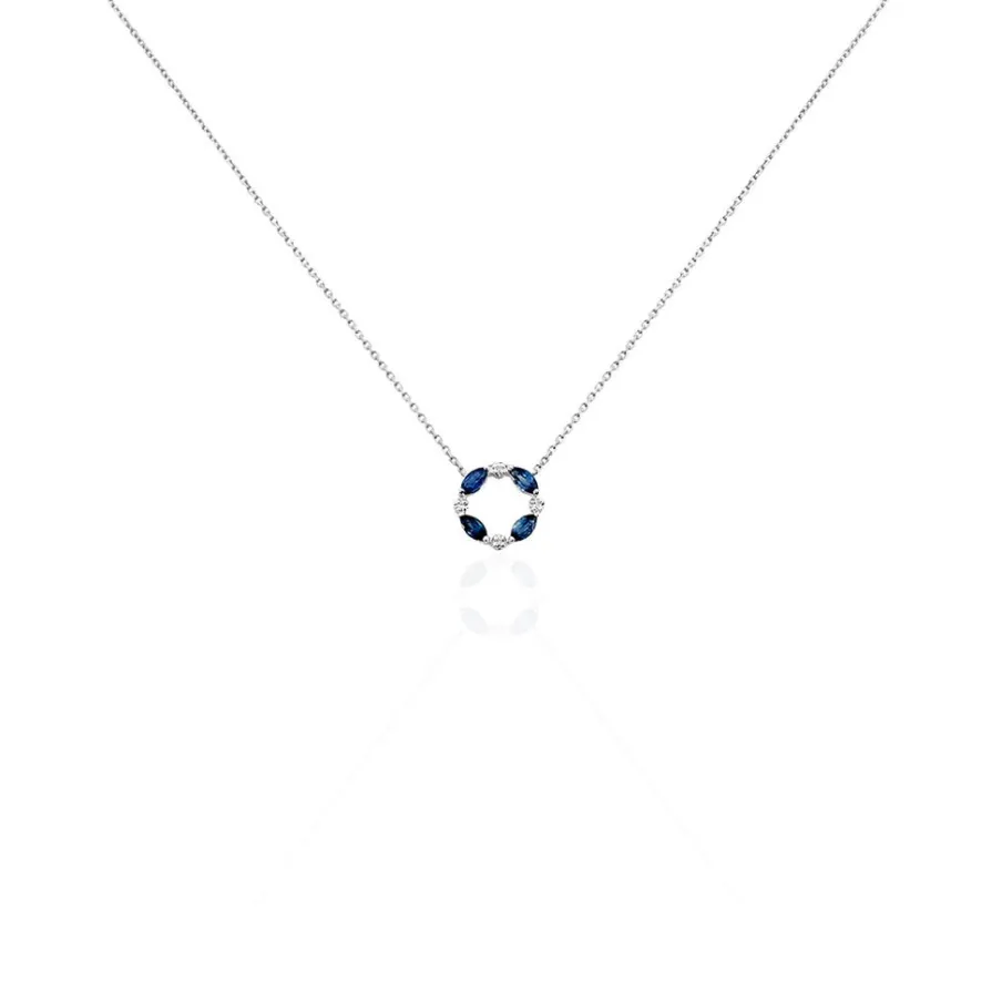 Collier Or Blanc 375/1000 Cercle Saphirs Et Diamants 42cm