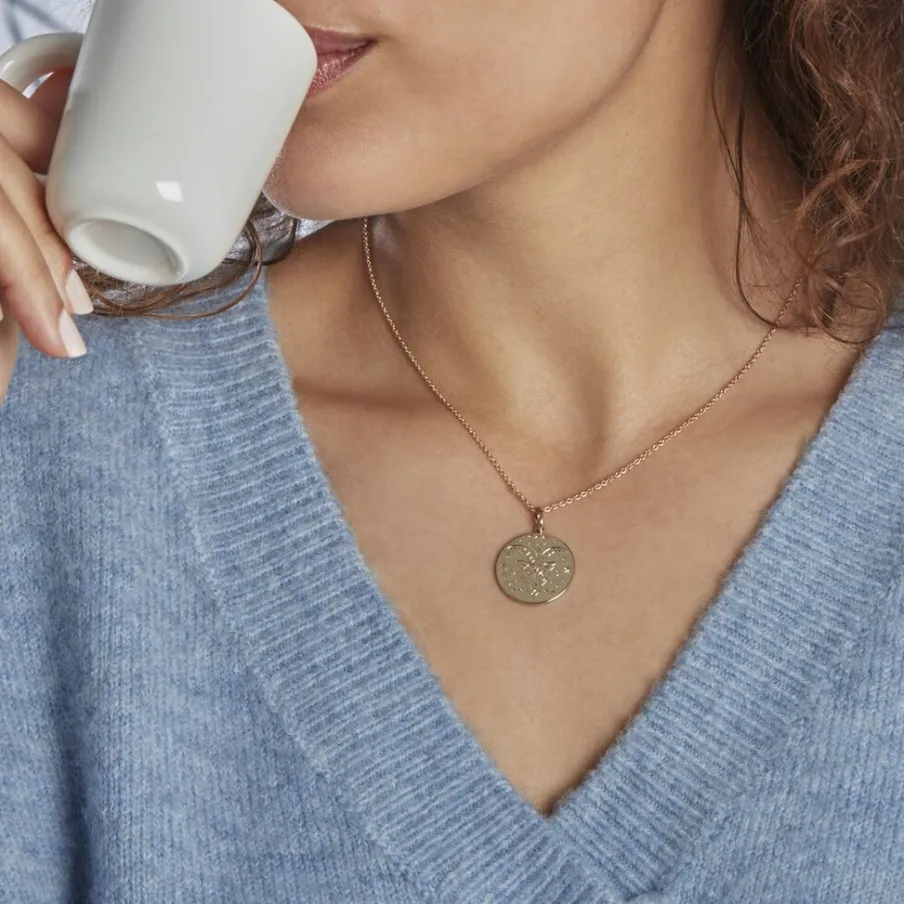 Collier Plaqué Or Jaune Forme Ronde Signe Du Capricorne Chaine Forcat 44cm