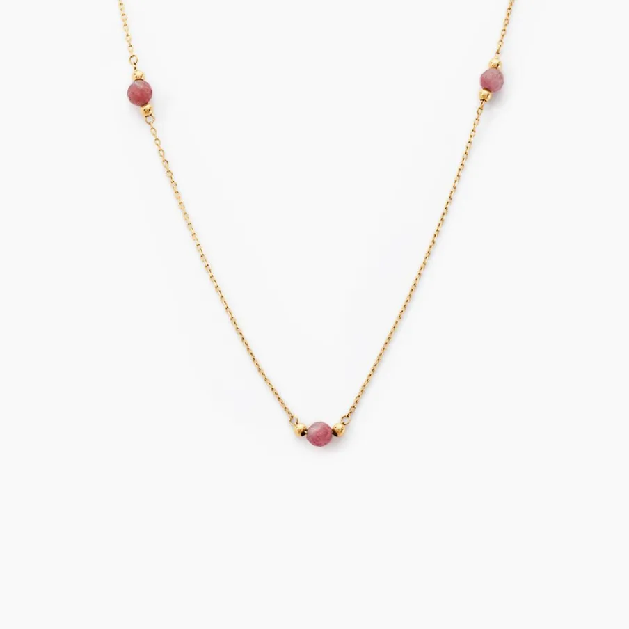 Collier Or Jaune 375/1000 Tourmalines Et Boules Maille Forcat 40+2cm