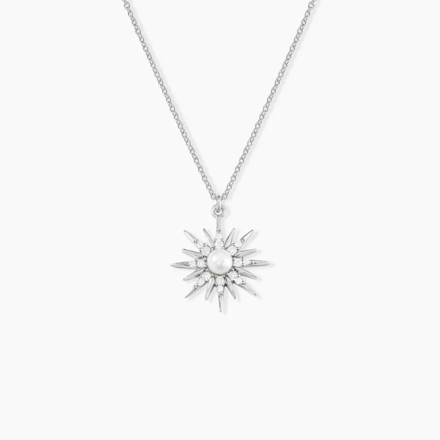 Collier Argent Blanc 925/1000 Forme Etoile Perle De Culture Nacre Pavage Oxydes De Zirconium 45cm