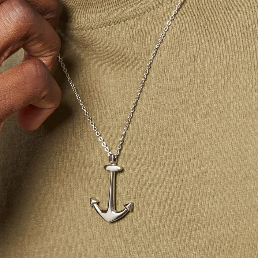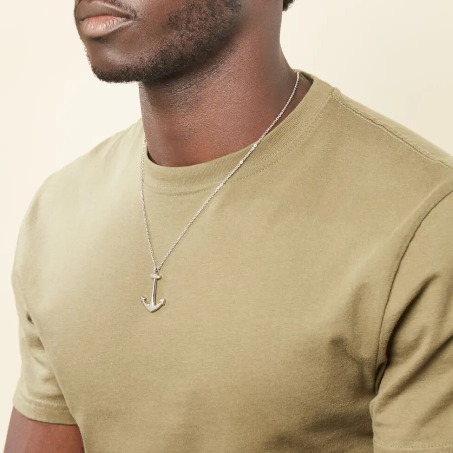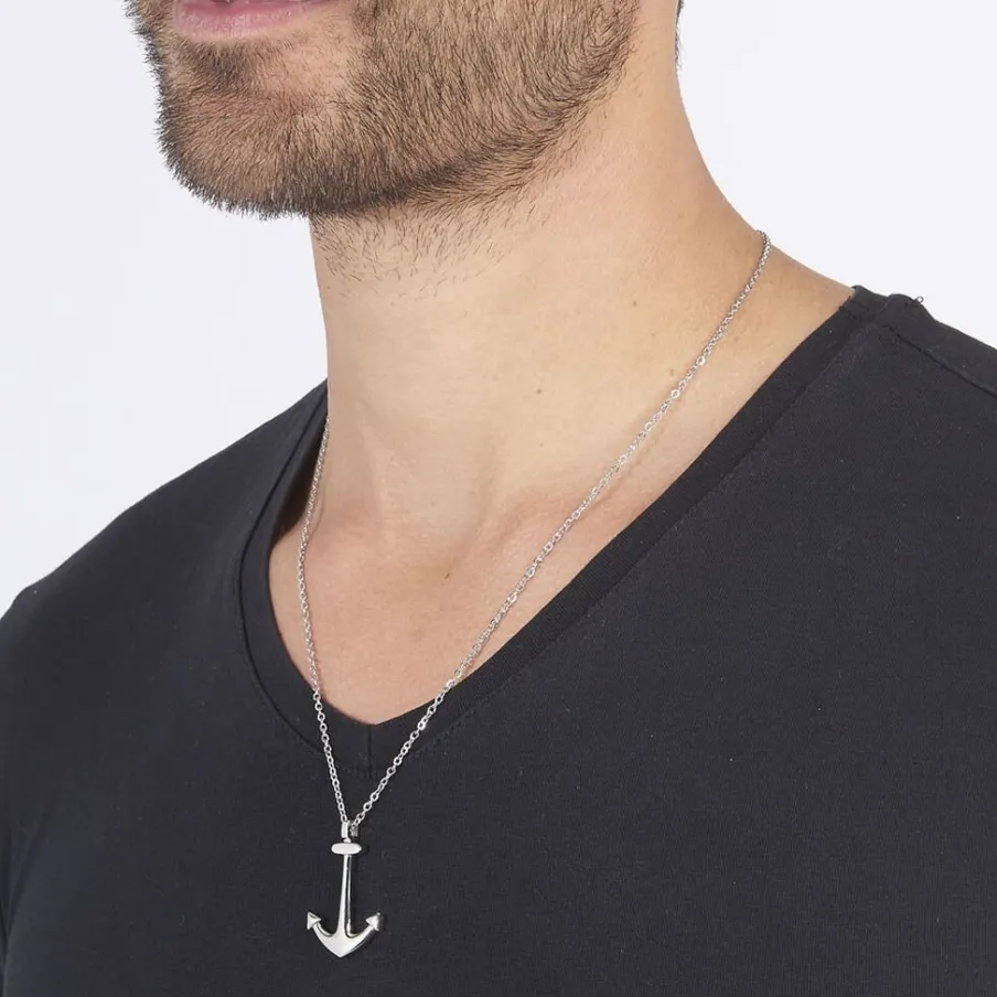 Collier Acier Blanc Ancre 50+5cm