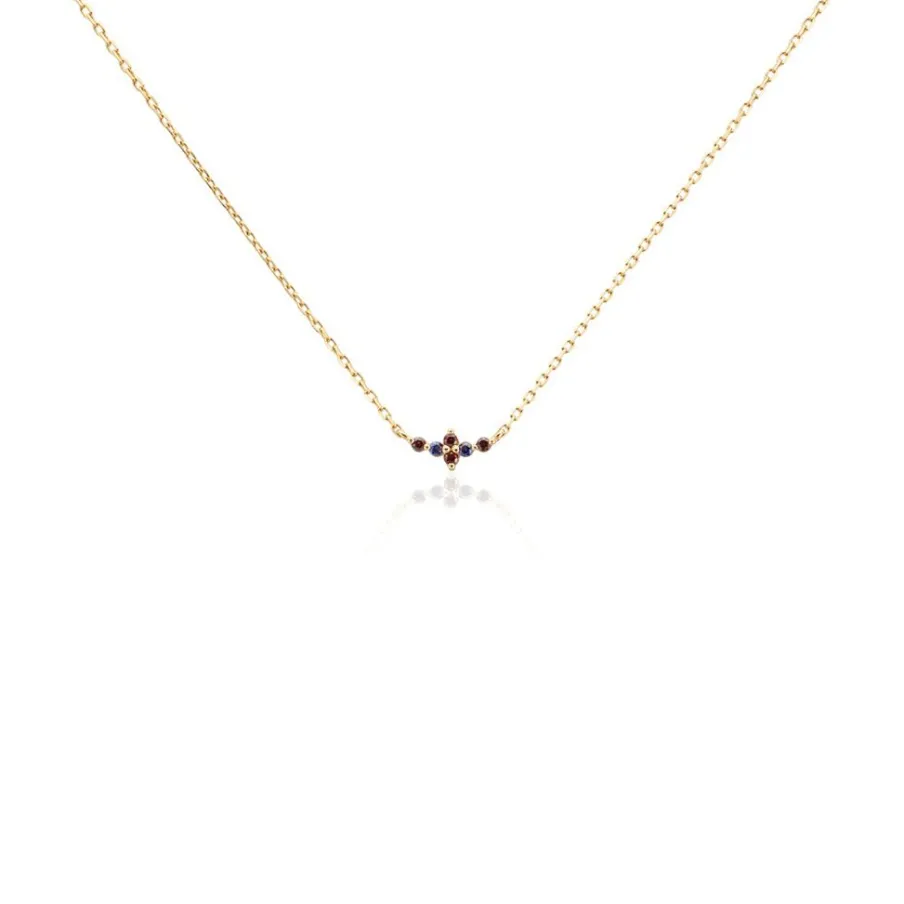 Collier Plaqué Or Fleur Pierres De Synthèses Bleues Et Marrons Maille Forçat 45cm