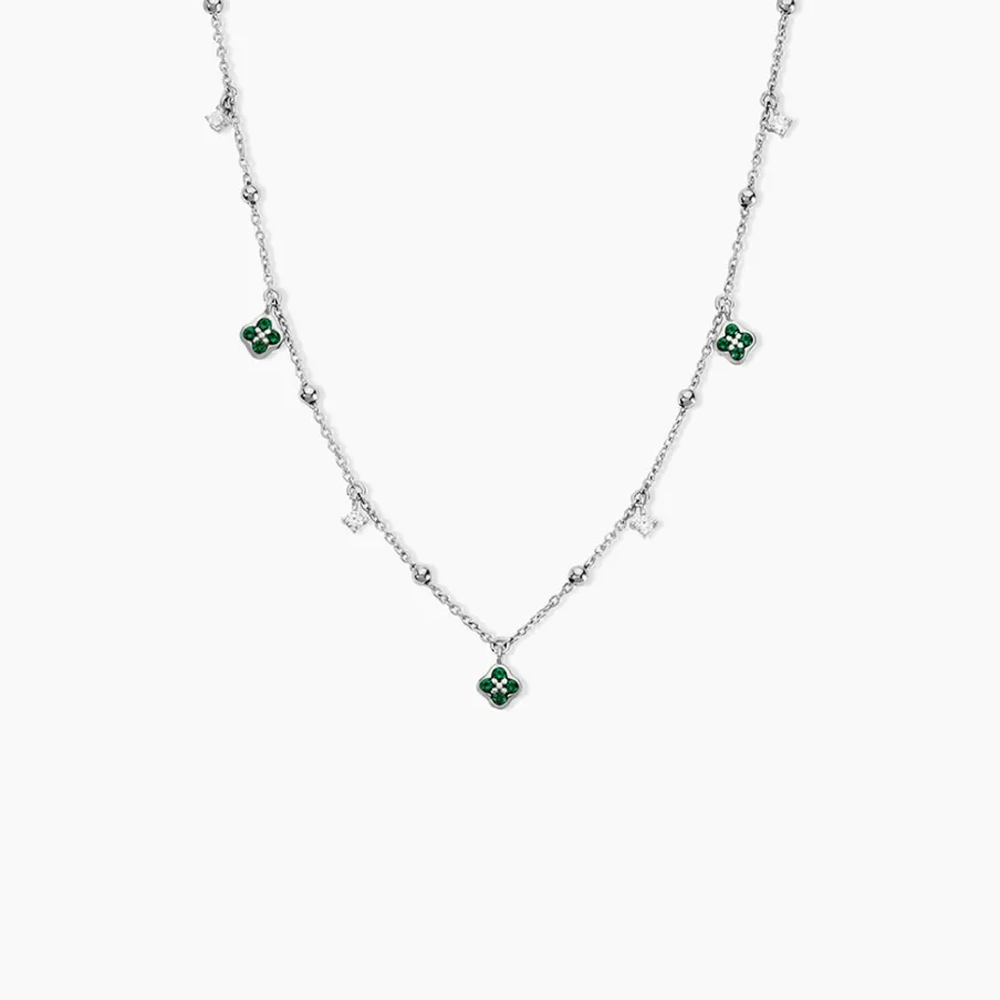 Collier Argent Blanc 925/1000 Pampilles Fleurs Pierres Vertes Et Oxydes De Zirconium Maille Forcat 42+3Cm