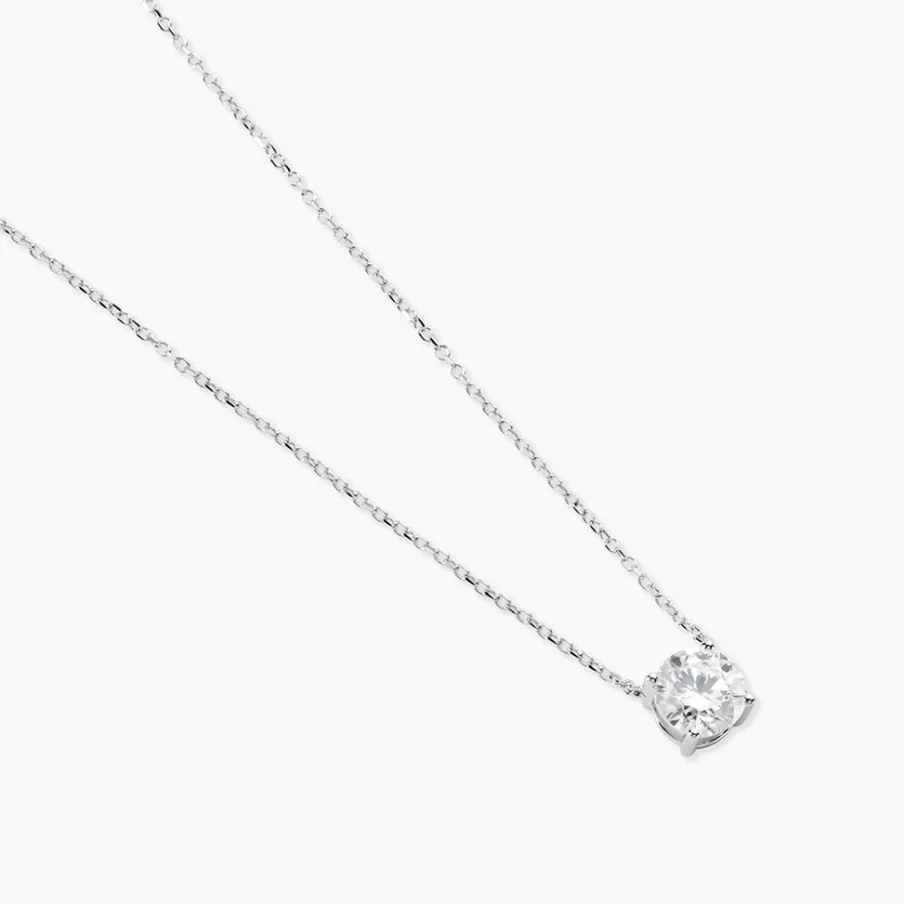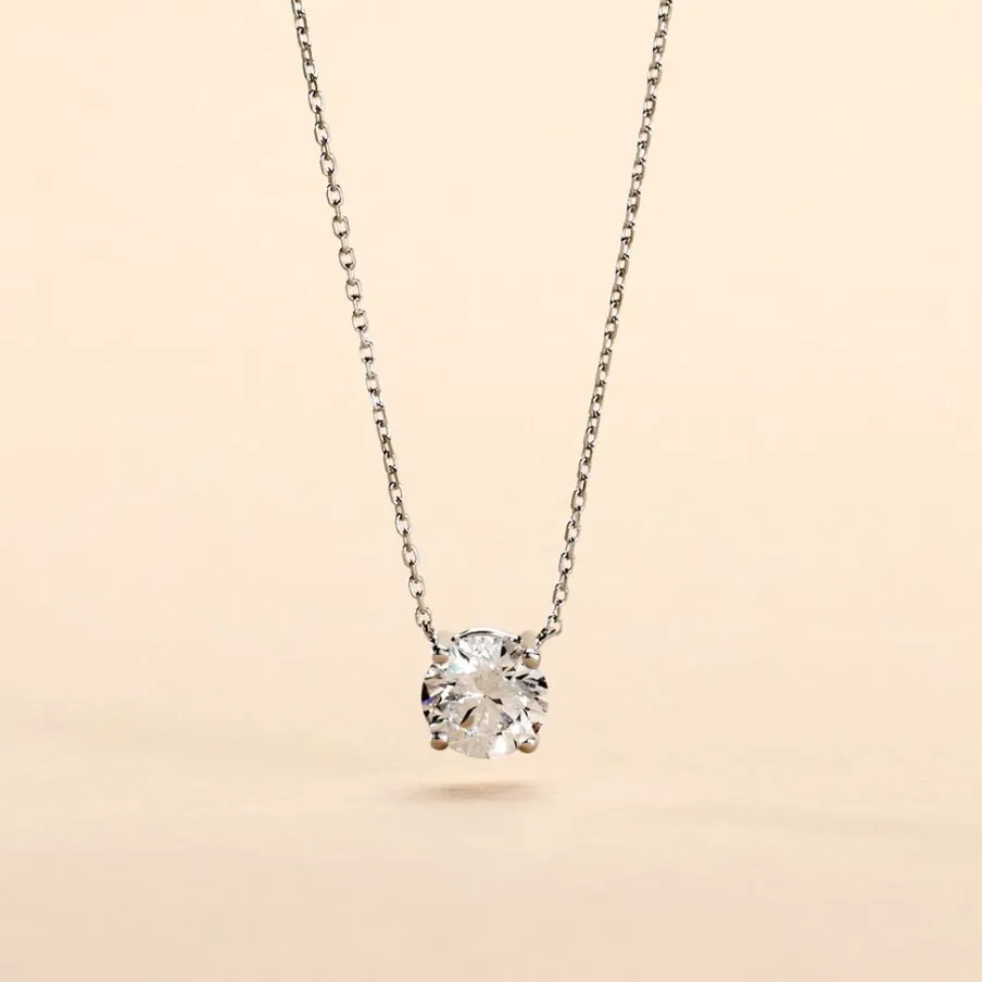 Collier Or Blanc 750/1000 Solitaire Maille Forcat Diamant Synthétique 1.01ct 45cm